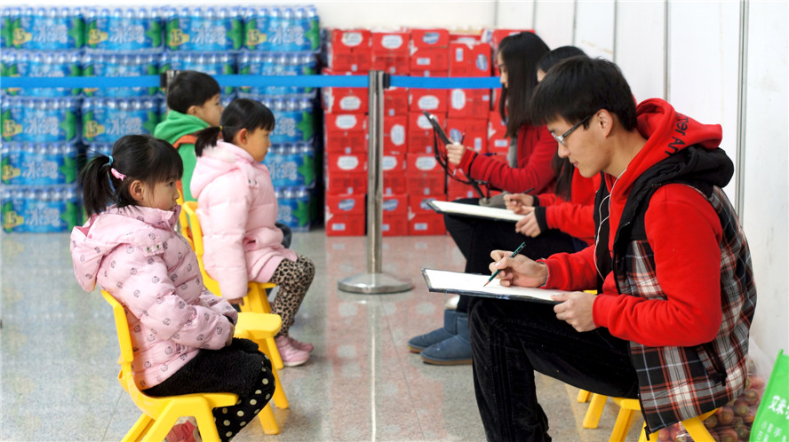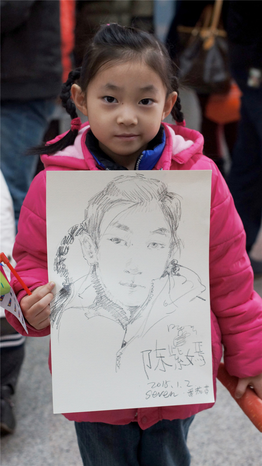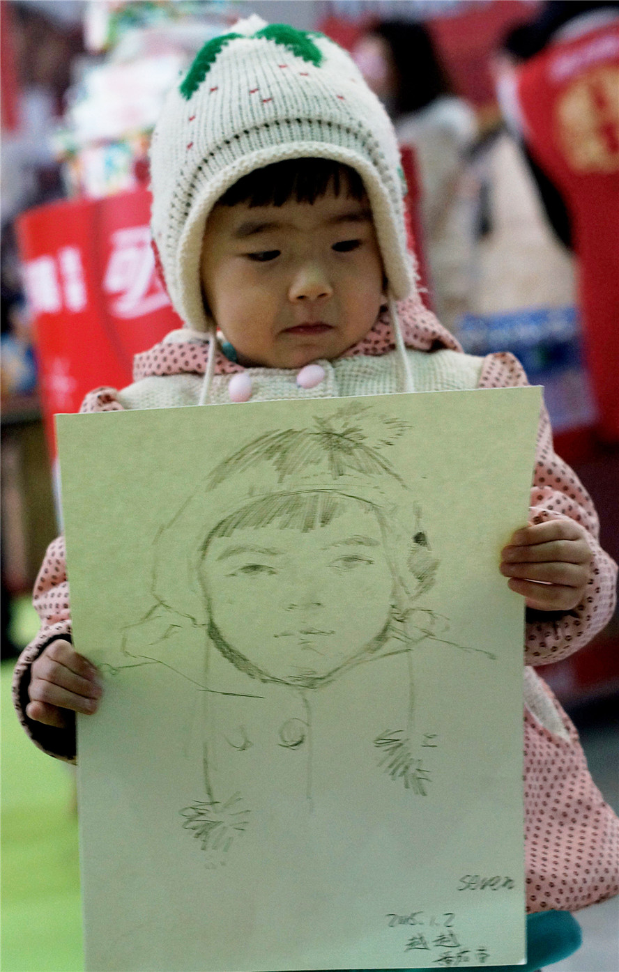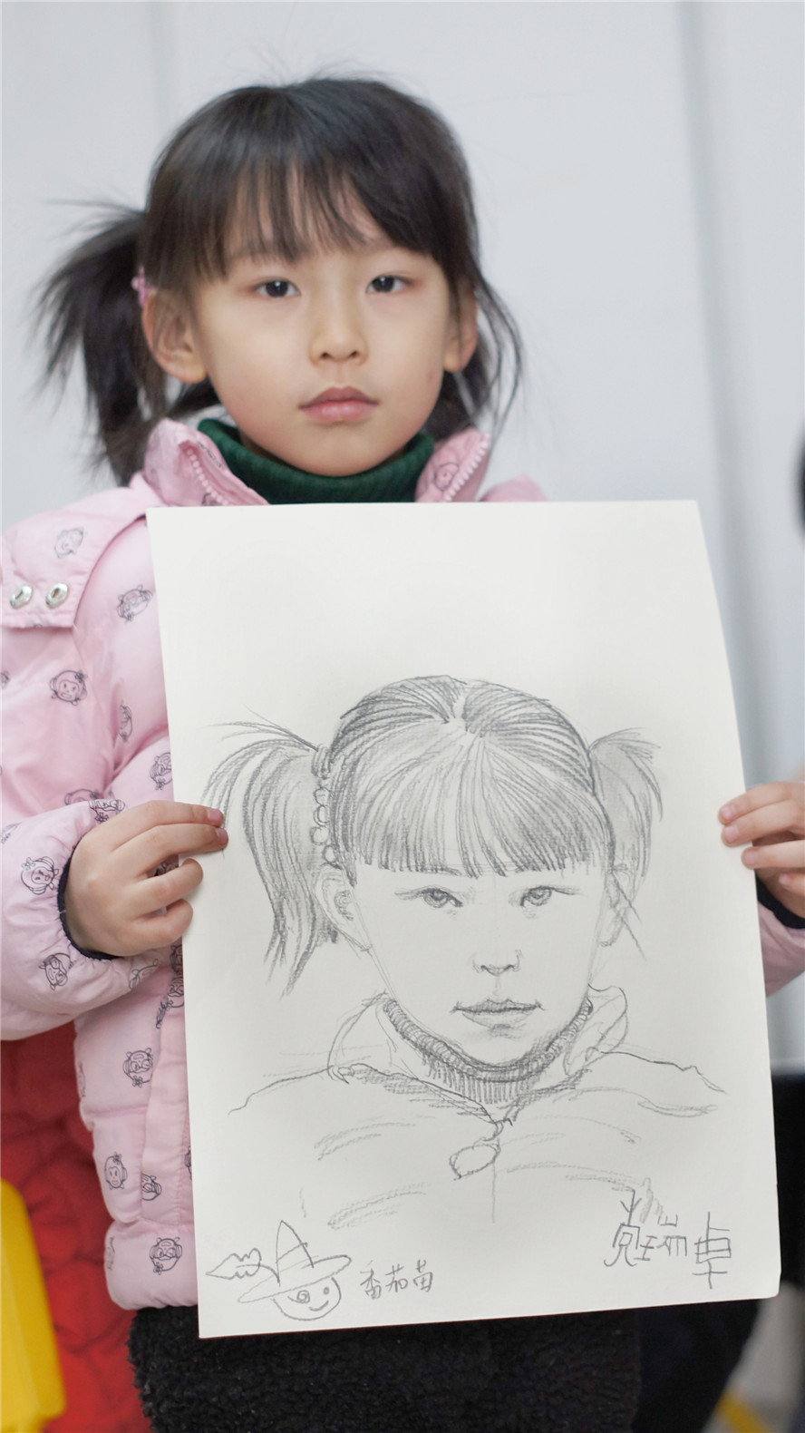 农夫现场还召集了很多小模特,在新年里,为小朋友画张像,留住新年里的模样....
