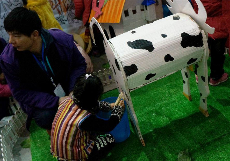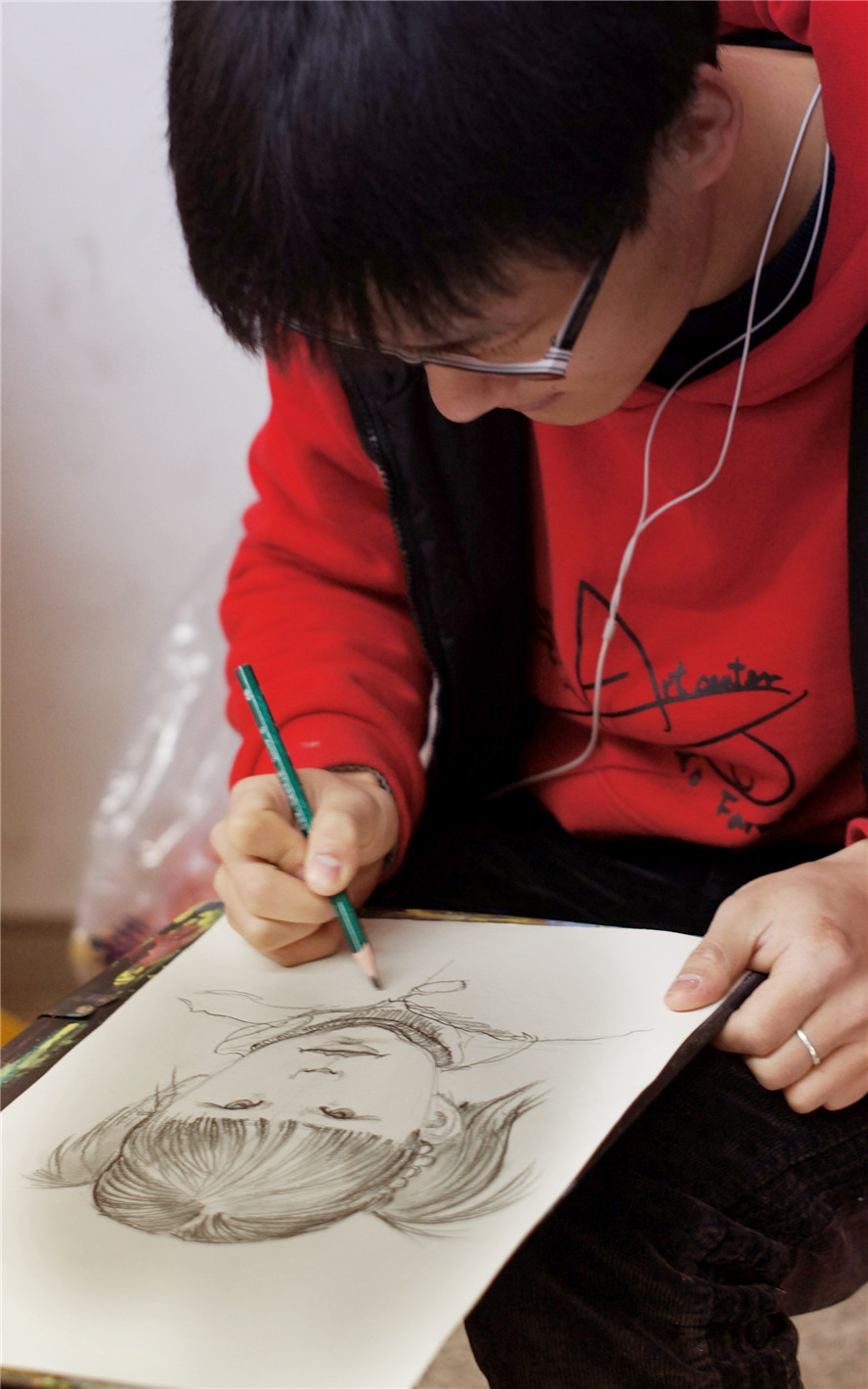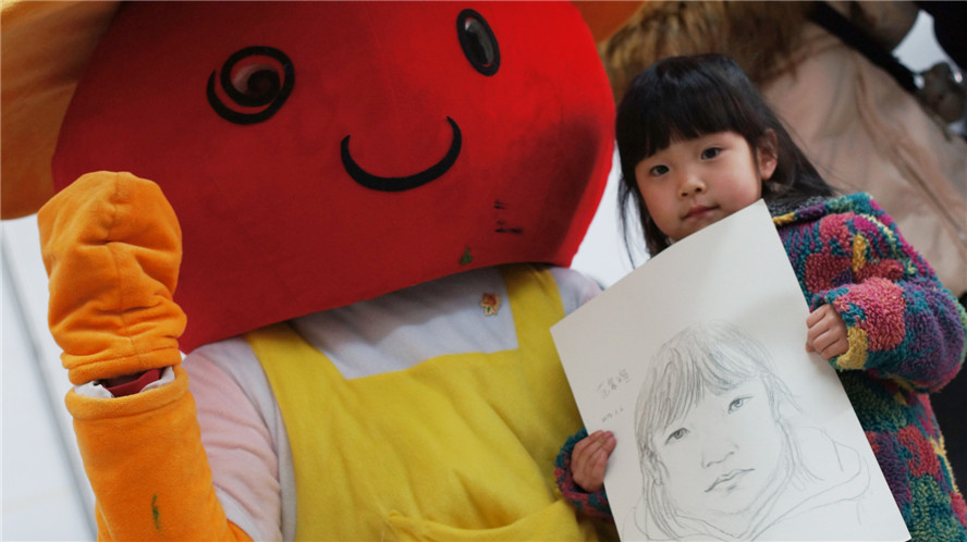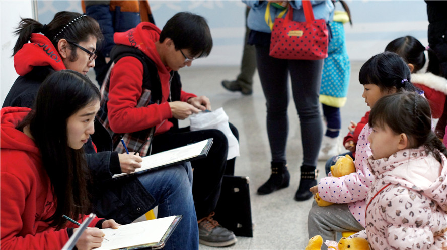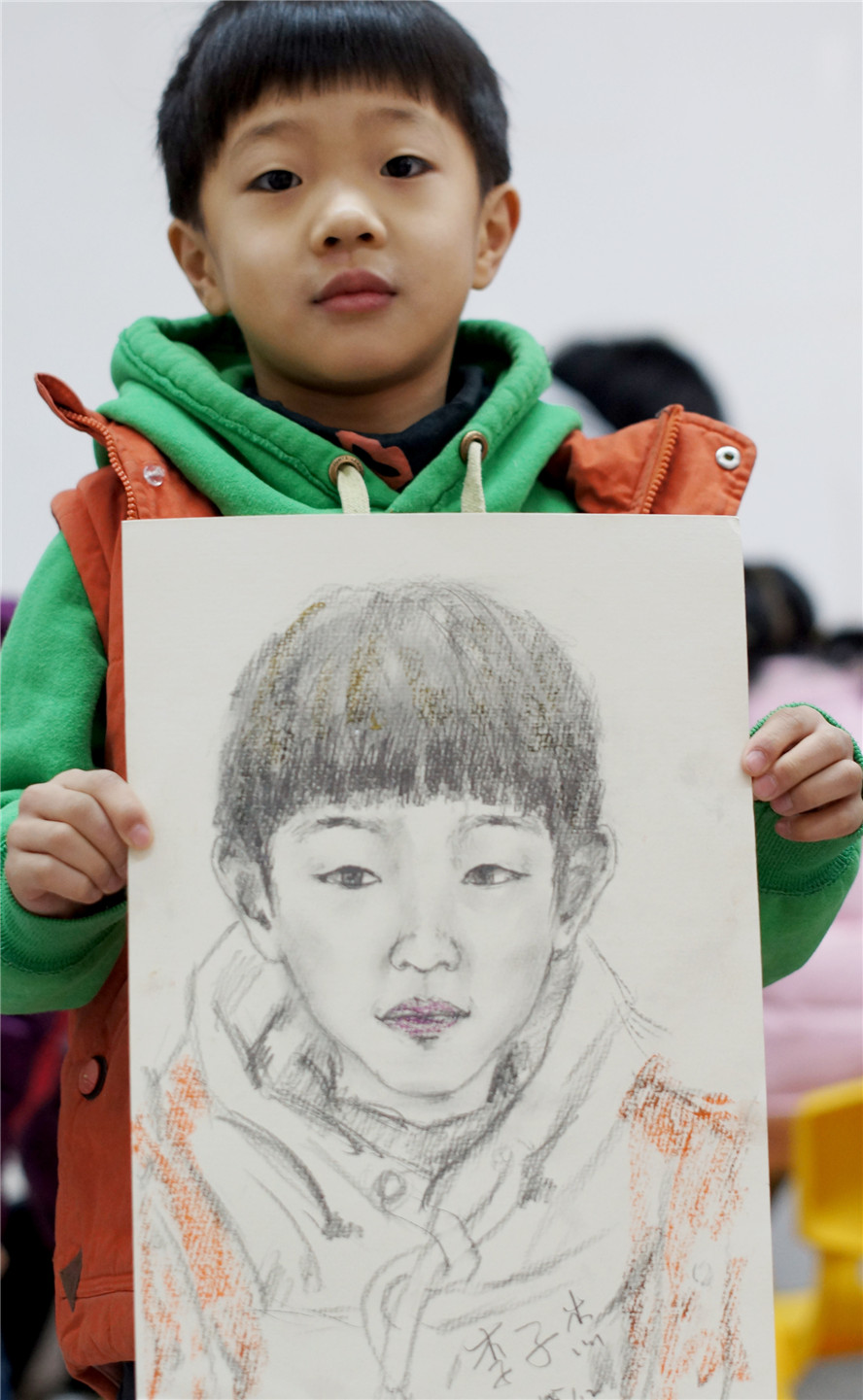 农夫现场还召集了很多小模特,在新年里,为小朋友画张像,留住新年里的模样....